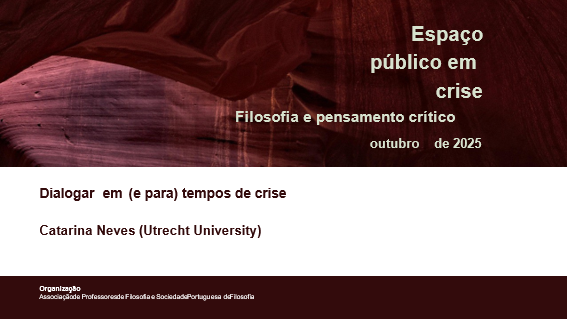 Comunicação apresentada no 7. º Encontro Nacional de Professores de Filosofia, realizado na FLUP e online, a 18 de outubro de 2025, subordinado ao tema “Espaço público em crise. Filosofia e pensamento crítico”.